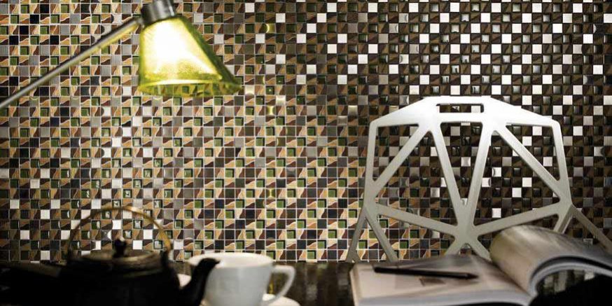 La collezione Dialoghi, firmata Francesco Lucchese, permette di creare mosaici originali e personalizzati, scegliendo tra una varietà di essenze in legno, pietre naturali, vetro e metallo, in un infinito scambio tra forme e materie.