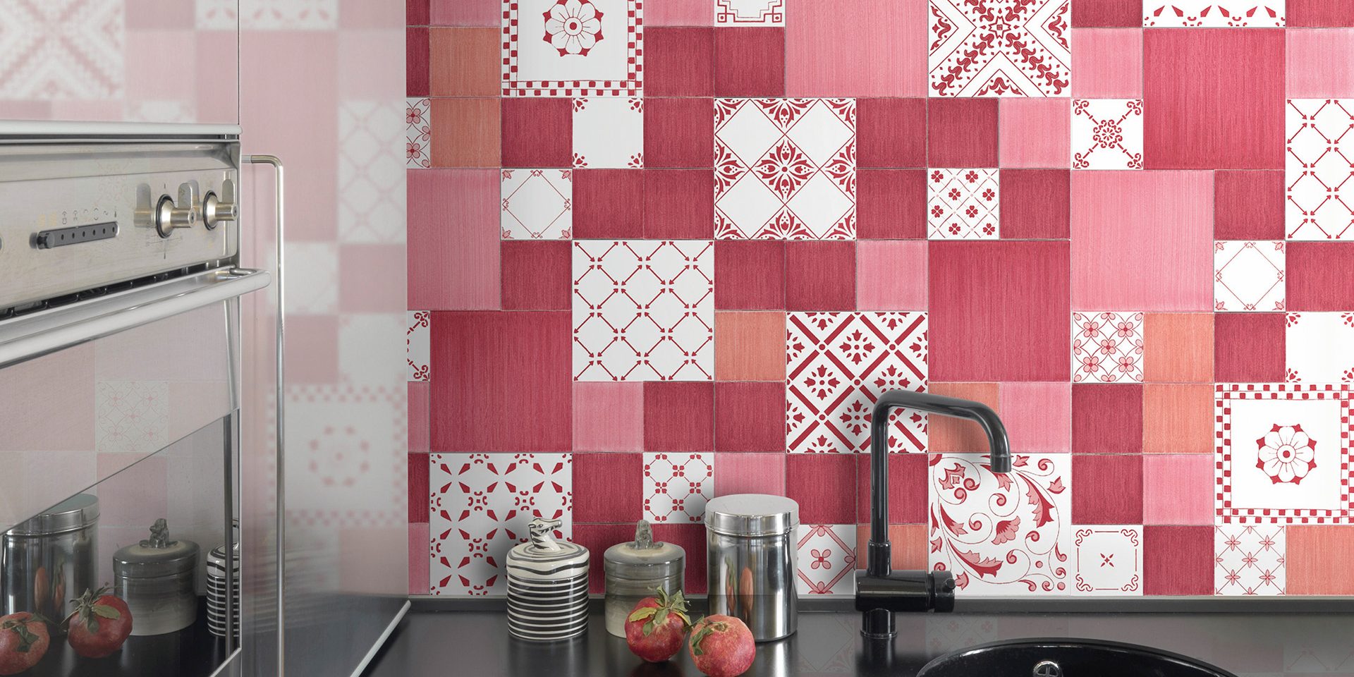7 piastrelle decorate 20×20: Crociato, Crestarella, Praia, Antonella, Freccette, Cristalli, Melinda.