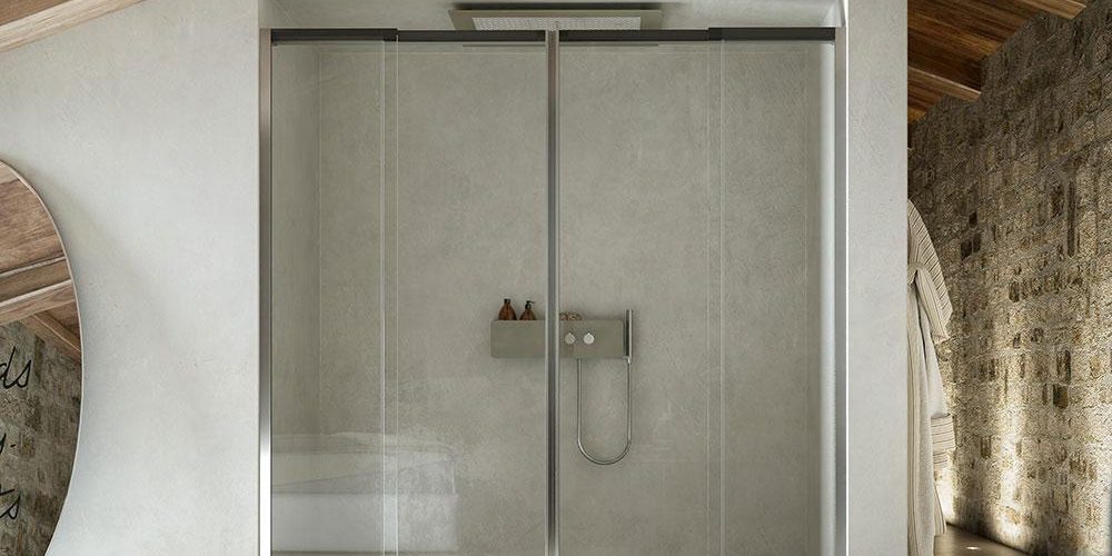 Pensata per spazi doccia ampi, Moov scorre su cuscinetti a sfera integrati sul binario superiore che garantiscono fluidità e silenziosità nel movimento.