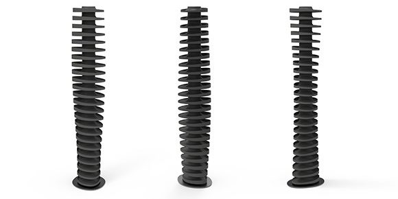 La sua forma trae ispirazione dai totem dei Chinook, un’antica tribù indiana che ha dato poi il nome all’omonimo vento caldo proveniente dal nord America, la sua funzione, invece, evoca le stesse sensazioni di piacevole calore. Chinook è il termoarredo dalle linee dinamiche e voluminose, formato da dischi di alluminio assemblati tra loro con una rotazione di cinque gradi che suggerisce l’effetto di torsione e accompagna lo sviluppo del corpo scaldante verso l’alto, formando una ‘scultura’ free-standing. L’intensa carica estetica di Chinook si basa su un inedito utilizzo di dischi metallici, che insieme si ‘elevano’ in verticale e diffondono calore in modo costante, uniforme, avvolgente, valorizzando lo spazio attraverso la forma. Il radiatore è, quindi, il risultato di una ricerca attenta e rigorosa di forme, materiali e tecnologie, per creare un sostanziale equilibrio tra design e funzione. Come un ‘vortice’ di calore, Chinook si presta ad avere un ruolo da protagonista nello spazio living e a stupire nello spazio bagno o wellness, grazie alla sua conformazione sinuosa e slanciata e alla possibilità di essere customizzato con oltre 200 varianti di colore a catalogo Antrax IT. Chinook è un radiatore dall’importante valore scenografico. Il design ambizioso e il profilo scultoreo trasmettono la sensazione di poter modellare la materia, creando, così, nuove e inaspettate suggestioni nell’interior contemporaneo. La sua personalità spiccatamente decorativa conserva le necessarie caratteristiche di funzionalità ed efficienza termica.