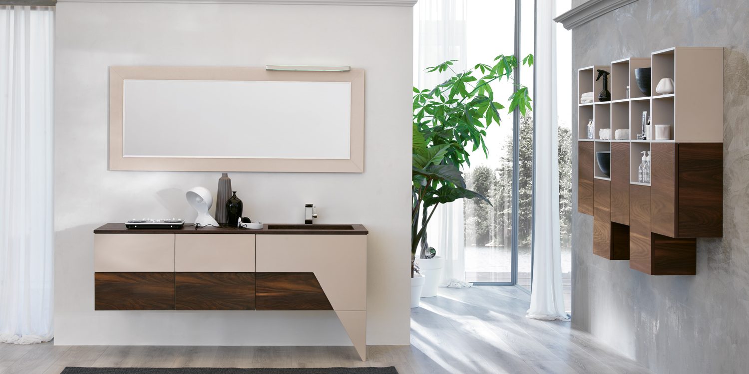 Le diverse geometrie delle ante, con il particolare della sovrapposizione delle stesse come elemento di spicco, permettono di osare abbinamenti cromatici creativi e personali.